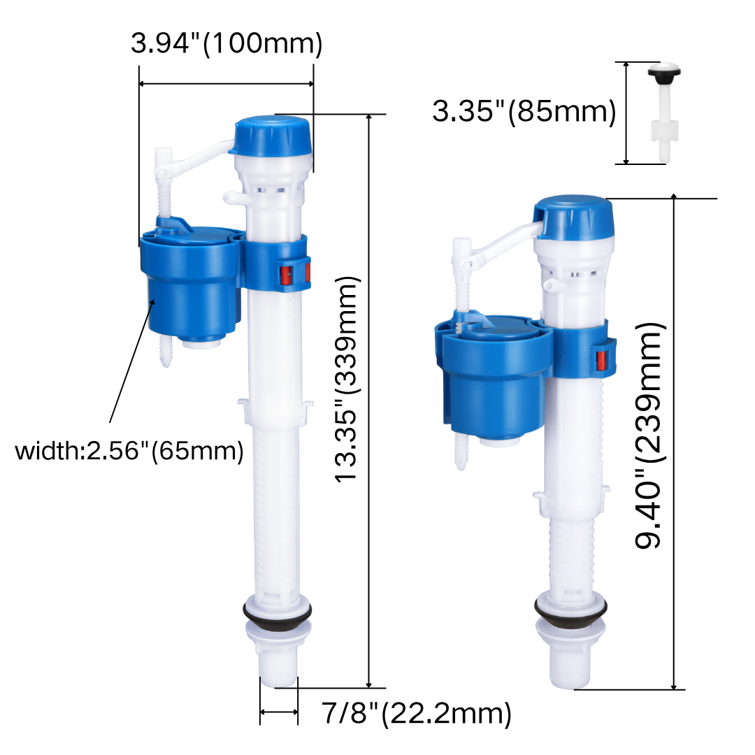 Second, choose between an adjustable overflow pipe and a fixed overflow pipe. The length of the overflow pipe is determined by the working water level of the tank. If the working water level is uncertain, it is recommended to select an adjustable overflow pipe. The fixed overflow pipe has a default length of 200mm, which is suitable for most toilet tanks.